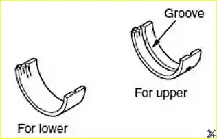 3) Установить подшипник без паза со стороны корпуса крышек коренных подшипников коленчатого вала.