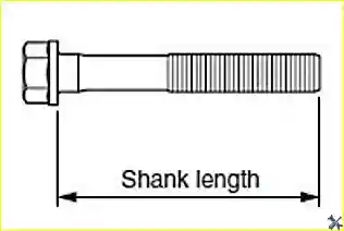 - 2) Перед установкой болтов крепления корпуса крышек коренных подшипников, необходимо убедиться, что длина стержней болтов находится в пределах спецификации. Если полученный результат выходит за рамки спецификации, то необходимо заменить болт новой деталью.