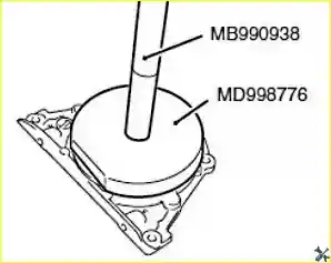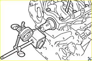 Примечание: Установить задний сальник коленчатого вала при помощи специальных приспособлений, как показано на рисунке.