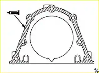 - 2) Нанести герметик на монтажную поверхность заднего уплотнительного Фланца, как показано на рисунке.