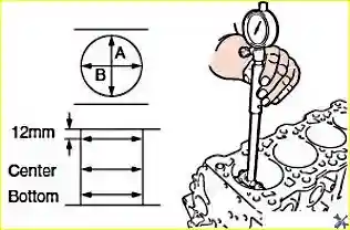 - 4. Измерить диаметр отверстия каждого цилиндра с помощью нутромера, как показано на рисунке.