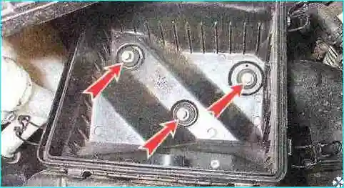 Ключом на 10 мм откручиваем три болта крепления и снимаем корпус фильтра