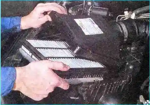 Воздушный фильтр заменяем через 8-10 тыс. км пробега автомобиля. При тяжелых условиях эксплуатации (когда автомобиль эксплуатируется в условиях повышенной запыленности) фильтрующий элемент следует заменять чаще.