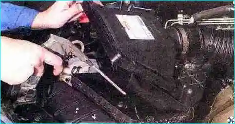 - - крестовой отверткой или ключом на 8 мм ослабляем хомут крепления воздуховода к воздушному фильтру