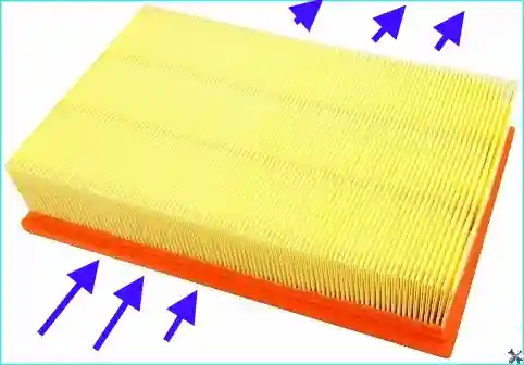 Замечание: Для очистки фильтрующего элемента пылесосом удаляем пыль и продуваем сжатым воздухом от компрессора или ножного насоса в направлении, обратном движению воздушного потока