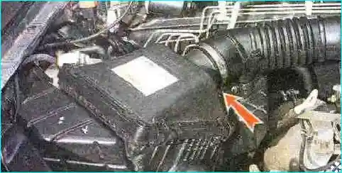 Отсоединяем от корпуса воздушного фильтра воздуховод, для этого: