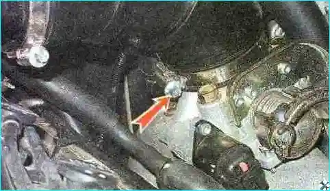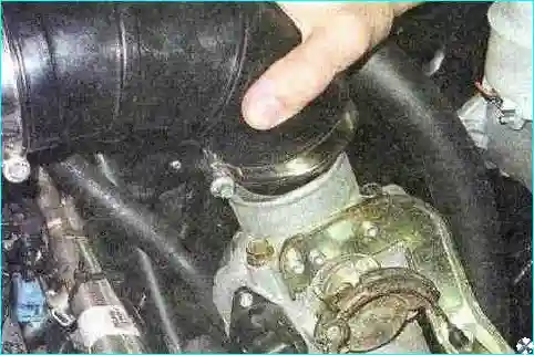 - - аналогично ослабляем хомут крепления воздуховода к дроссельному узлу
