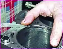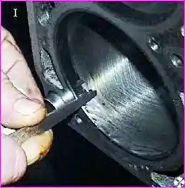 Очистите нагар в верхней части цилиндров. Если там образовался поясок вследствие износа цилиндров, снимите его шабером. Проверьте износ цилиндров, замерив их диаметры