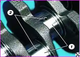 Если на коренных и шатунных шейках (1) есть незначительные задиры, риски, царапины, нужно прошлифовать их до ближайшего ремонтного размера.