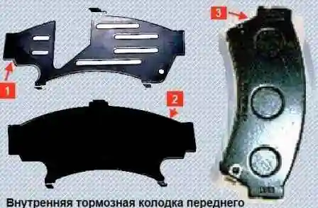 При необходимости снимаем с внутренней колодки наружную и внутреннюю накладки