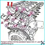 Если необходим ремонт головки блока цилиндров двигателя, установленного на автомобиле, снимите ее («Замена прокладки головки блока цилиндров»)