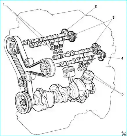 Клапаны открываются и закрываются непосредственно четырьмя распредвалами (см. рис. 1)