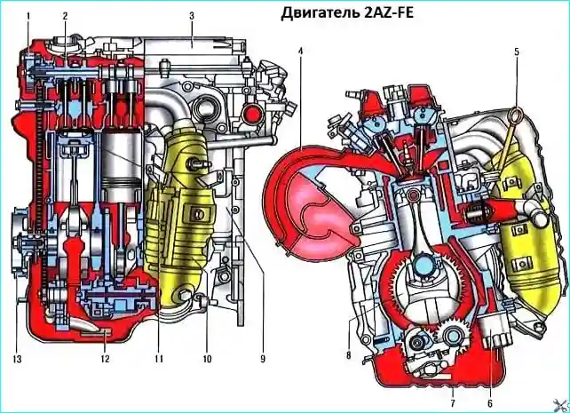 Двигатель с верхним расположением пятиопорных распредвалов имеет по четыре клапана на каждый цилиндр