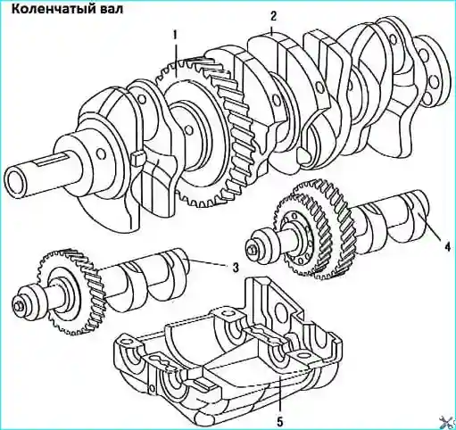 Коленчатый вал полноприводный, вращается в коренных подшипниках, имеющих тонкостенные стальные вкладыши с антифрикционным слоем