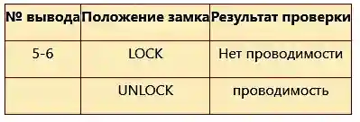 Если проводимость не соответствует данным в таблице, замените замок в сборе.