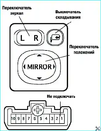 Подключите аккумуляторную батарею к выводам «3» (+) и «2» (–) разъема электропривода, убедитесь, что зеркало поворачивается влево.
