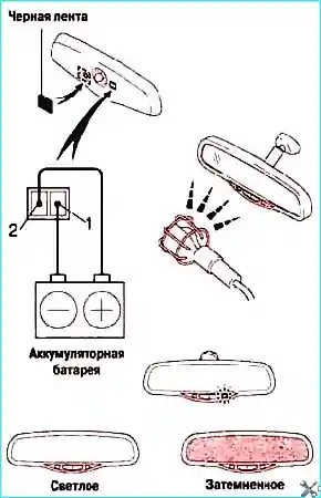 Заклейте черной лентой (см. рис. 3) датчик света внутреннего зеркала заднего вида.