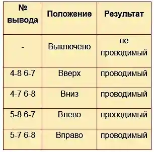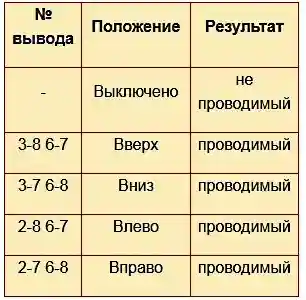 Отсоедините разъем переключателя и проверьте проводимость между выводами по таблицам.