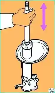 Вытягивая и утапливая шток амортизатора, проверьте, чтобы его ход был плавным, и отсутствовали постороннее сопротивление или шум.