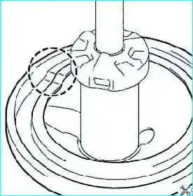 После снятия специального инструмента, снова проверьте правильность установки верхней опоры