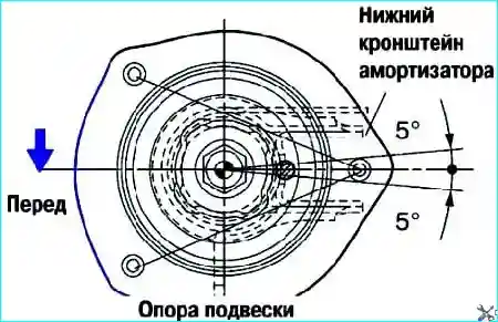 Ослабьте центральную гайку верхней опоры стойки