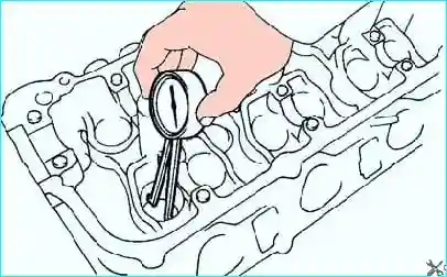 Индикатором-нутромером измерьте диаметры расточек под толкатели в головке блока цилиндров (рис. 3).
