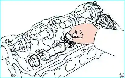 Если зазор больше максимально допустимого, замените распределительный вал.