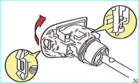 Для этого выводим наконечник оболочки привода замка из держателя на корпусе замка