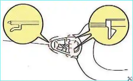 Фиксатор утапливаем и вынимаем пистон переднего крепления обивки двери