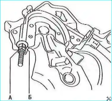 Ослабляем затяжку контргайки «А» (рис. 3) троса привода стояночного тормоза