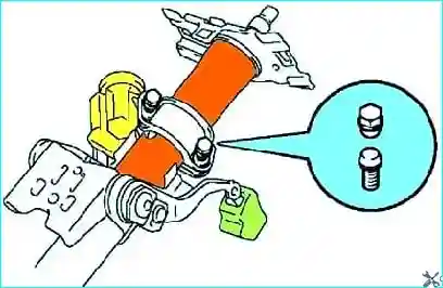 Установите промежуточный вал в сборе, совместите метки промежуточного вала и кронштейна рулевой колонки и затяните стяжной болт крепления (рис. 7). Момент затяжки: 35,3 Нм.