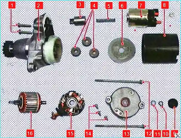 Собираем стартер в обратной последовательности, с учетом следующих особенностей
