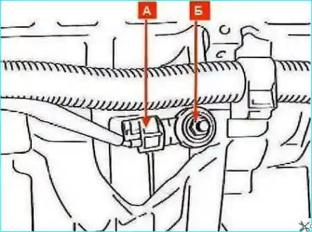 Откручиваем гайку «Б» и снимаем датчик со шпильки