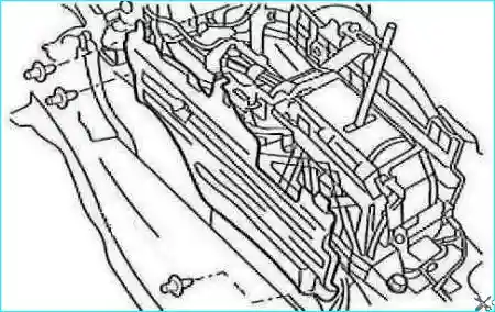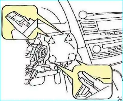 Выкручиваем болт и винт крепления левой нижней облицовки панели приборов и отводим облицовку, преодолевая сопротивление фиксаторов