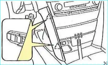 Снимаем левую накладку центральной консоли панели приборов, преодолевая сопротивление двух фиксаторов