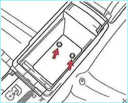 Выкручиваем два болта и снимаем вещевой ящик в облицовке тоннеля пола