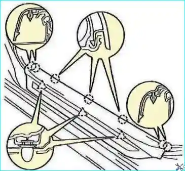 Вынимаем, держатели и фиксаторы крепления облицовки порога двери к панели кузова и снимаем облицовку