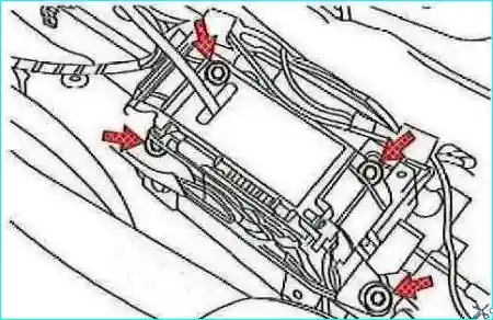 Выкручиваем четыре болта крепления селектора управления коробкой передач к панели кузова и отведите его в сторону
