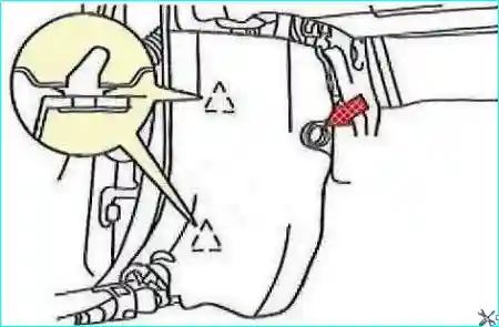 Извлекаем держатель боковой облицовки кожуха панели приборов