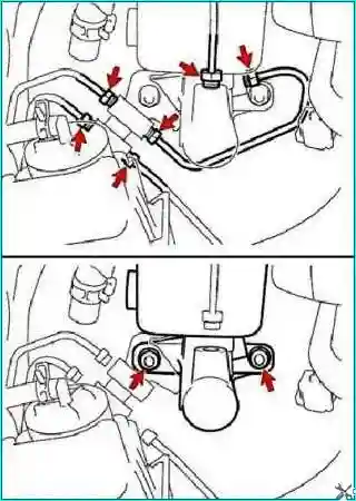 Откручиваем две гайки, снимаем главный цилиндр сцепления
