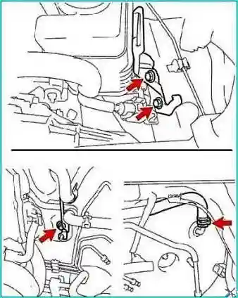 Снимаем усилитель тормозов, открутив болты крепления, показанные стрелками на рисунке