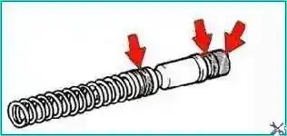 Поршень может выскочить из корпуса цилиндра. Поэтому осторожно вынимайте толкатель из корпуса цилиндра