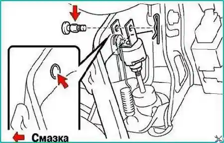 Наносим консистентную смазку МР на поверхности контакта штифта и втулки