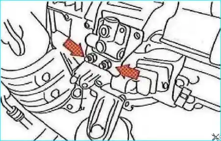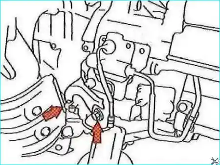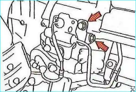 Выкручиваем два болта и снимаем рабочий цилиндр гидропривода выключения сцепления