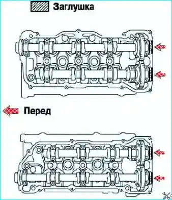 Установите распределительный вал впускных клапанов на головку блока цилиндров (рис. 1).