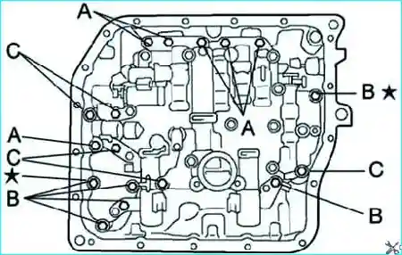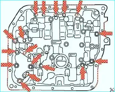 Поддерживая клапанный блок, отверните 17 болтов крепления и снимите клапанный блок (рис. 6).