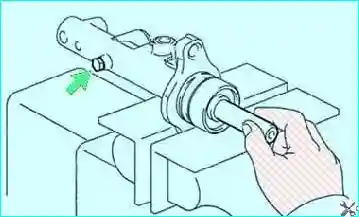 Положите тряпку на два деревянных бруска и легко ударяйте фланцем цилиндра по брускам, пока поршень №2 не выйдет наружу.