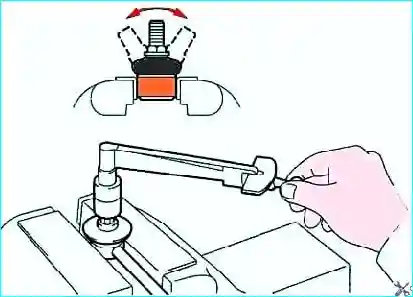 Если ось шарового шарнира проворачивается вместе с гайкой, используйте шестиугольный гаечный ключ (на 6 мм), чтобы удержать стойку.