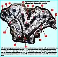 На часть Toyota Camry устанавливают бензиновый двигатель 2GR-HE (3,5 л) - четырехтактный, шестицилиндровый, V-образный, с четырьмя клапанами на каждый цилиндр, с распределенным впрыском топлива